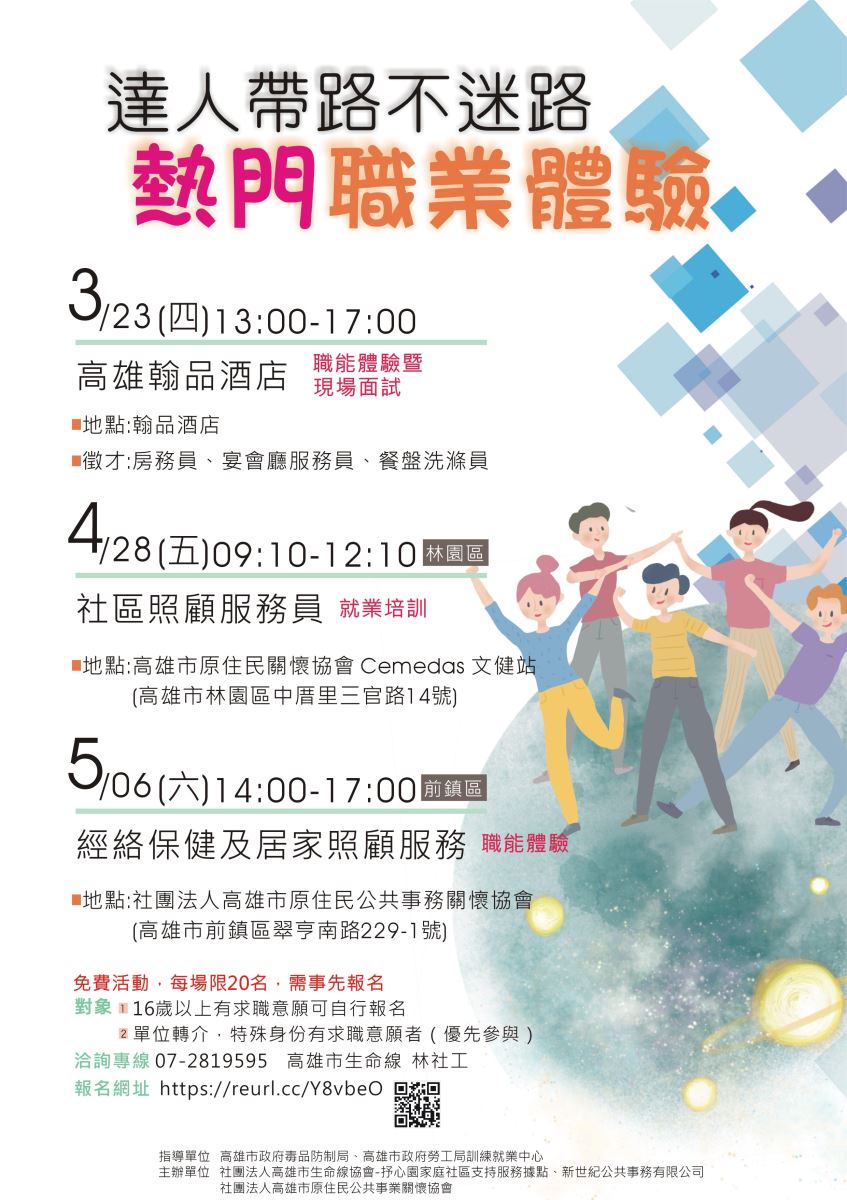 (2) 單位轉介、特殊身分且有求職意願者(優先參與),如低收/中低收、藥癮、 更生人、身心障礙、社安網,或由單位轉介服務個案。